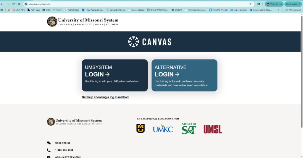 - If you do not have a University of Missouri System (UM System) login, choose “Other” or “Alternative Login” when prompted and follow the instructions to create a Canvas account.