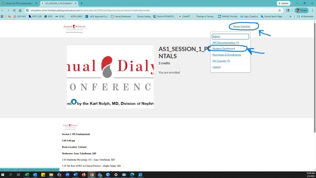 - You must enroll in the Annual Dialysis Conference 2026 Canvas course first.