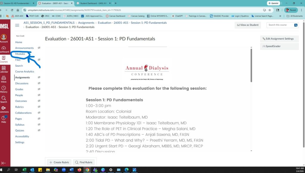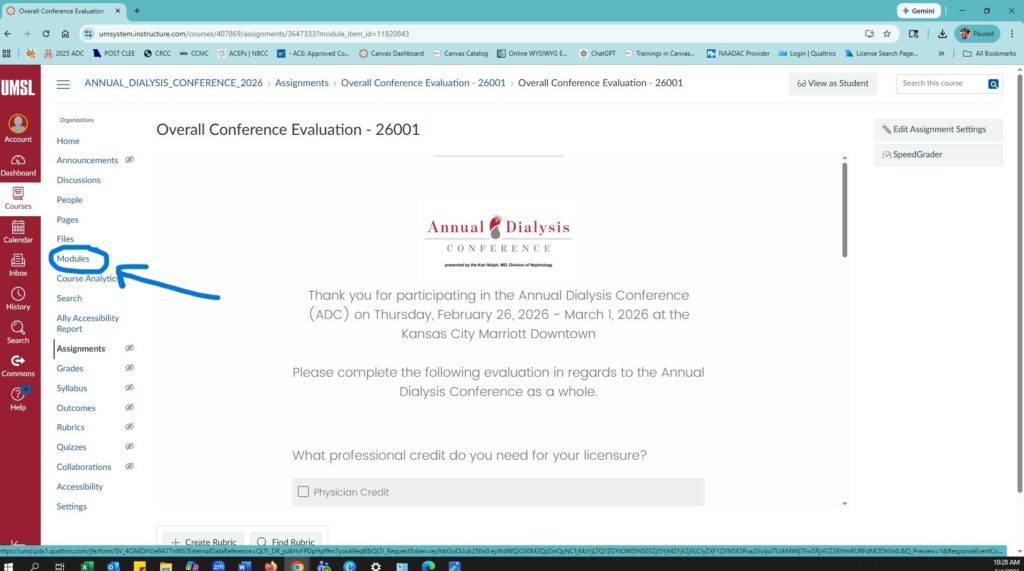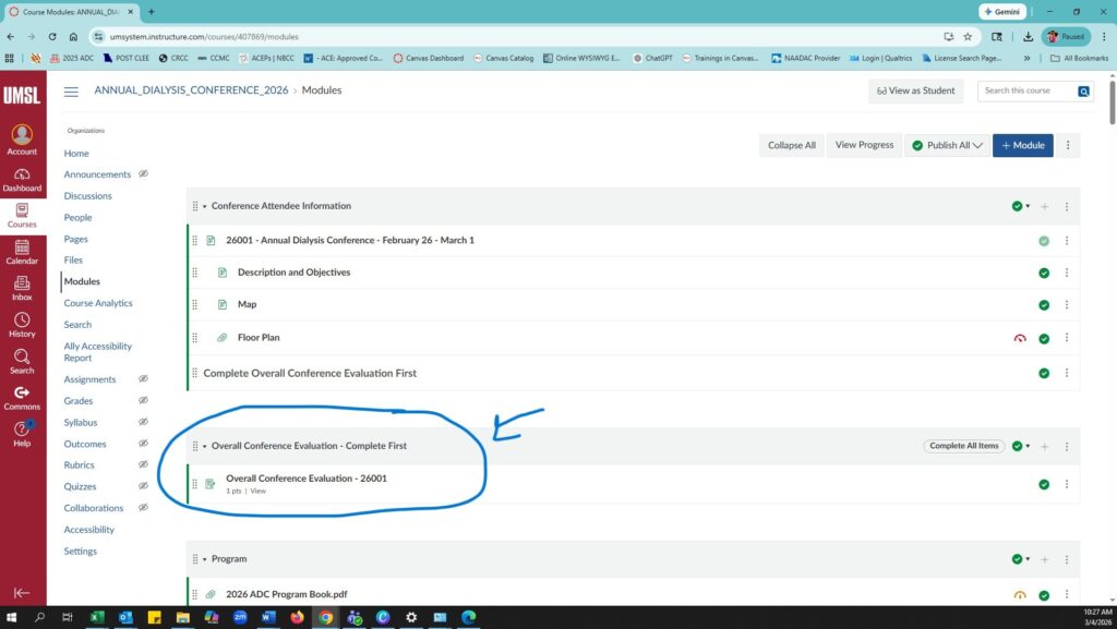 - In the Annual Dialysis Conference 2026 course, locate the Overall Conference Evaluation module.