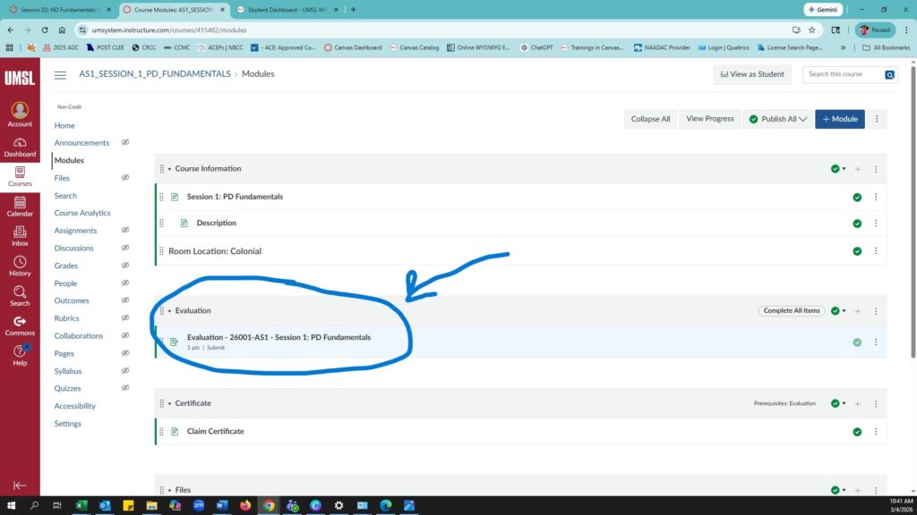 - Complete the session evaluation and certificate module for that session.